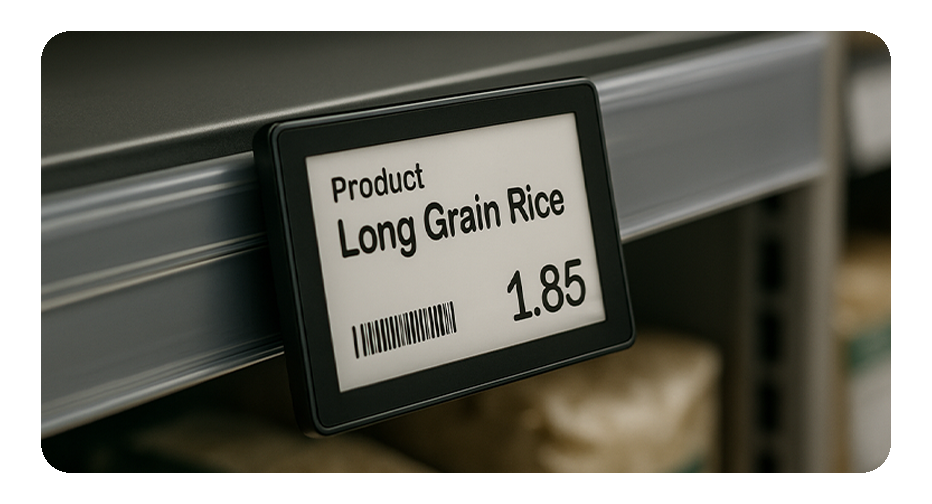 ESL은 전자종이(E-Paper) 디스플레이를 기반으로 다양한 정보를 디지털로 표기하고