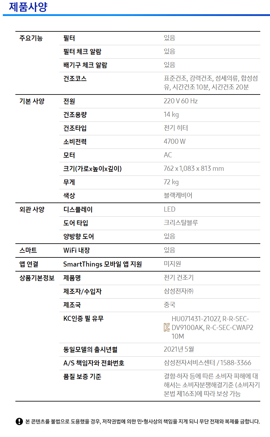 [렌탈] 삼성 코인 의류 건조기 14Kg DV14A9100KV