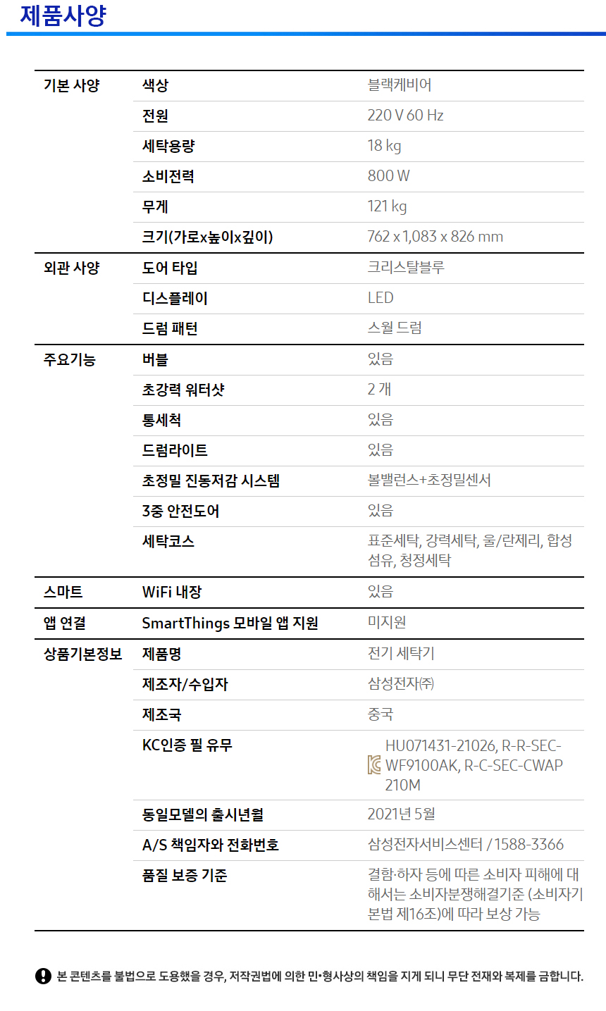 [렌탈] 삼성 코인 드럼 세탁기 18Kg WF18A9100KV