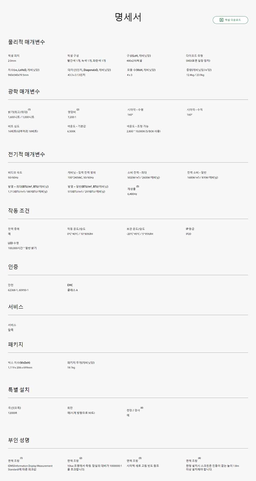 [렌탈] 삼성 스마트 LED 사이니지 실내용 픽셀피치 P2.0