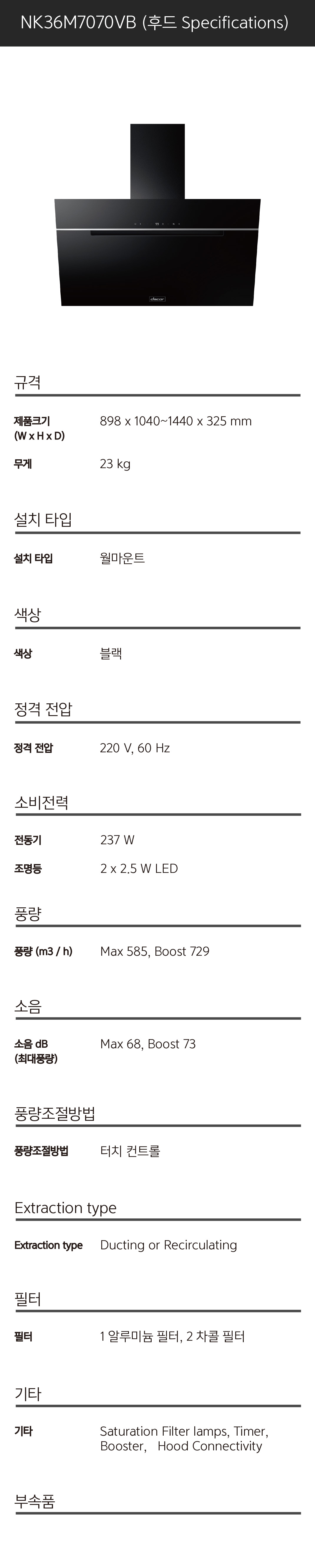 [렌탈] 삼성 데이코 주방 후드 DHD36M965VM
