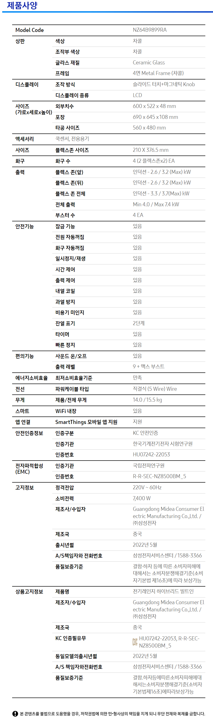 [렌탈] 삼성 비스포크 빌트인 인덕션 인피니트 라인 NZ64B9899RA