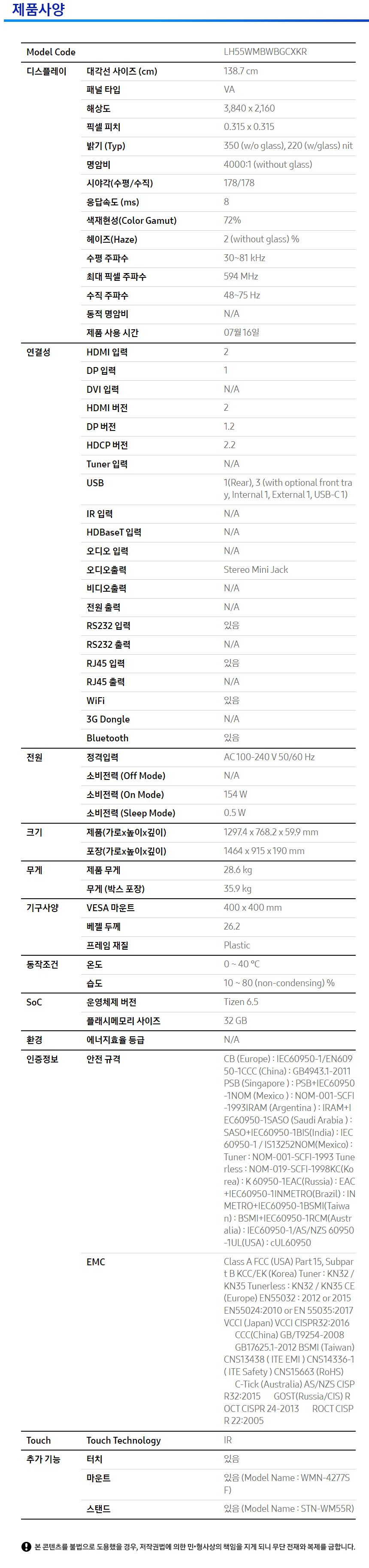 [렌탈] 삼성 전자칠판 플립 pro 55인치 LH55WMBWBGCXKR