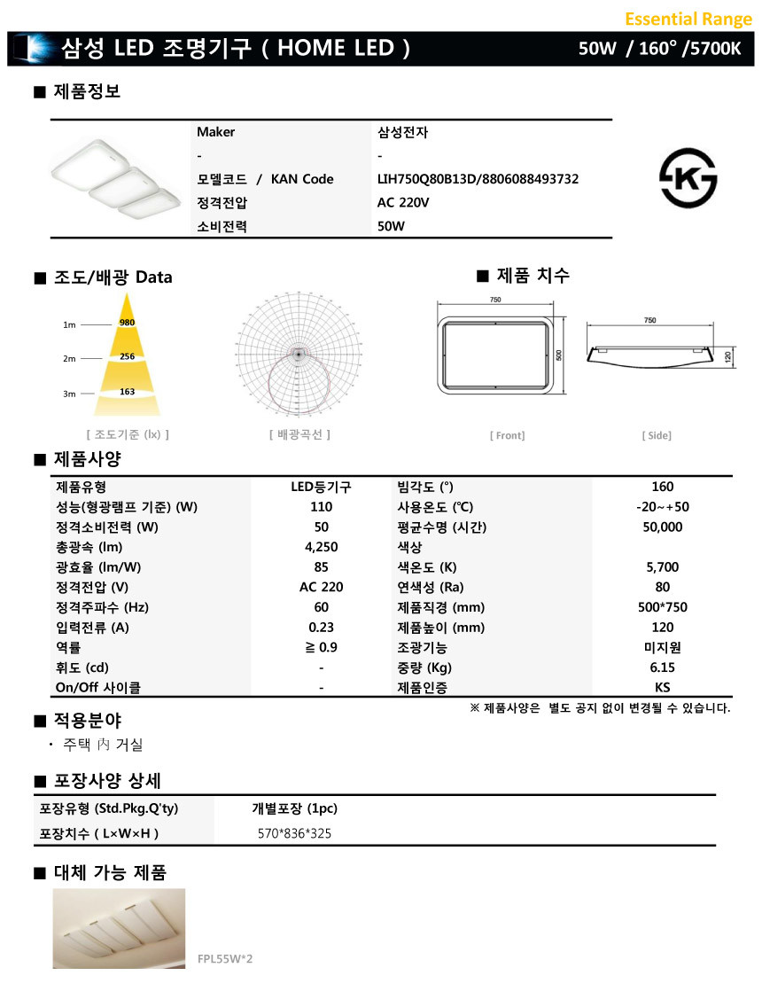삼성 LED 스타일렉 거실등 50W 100W,5700K
