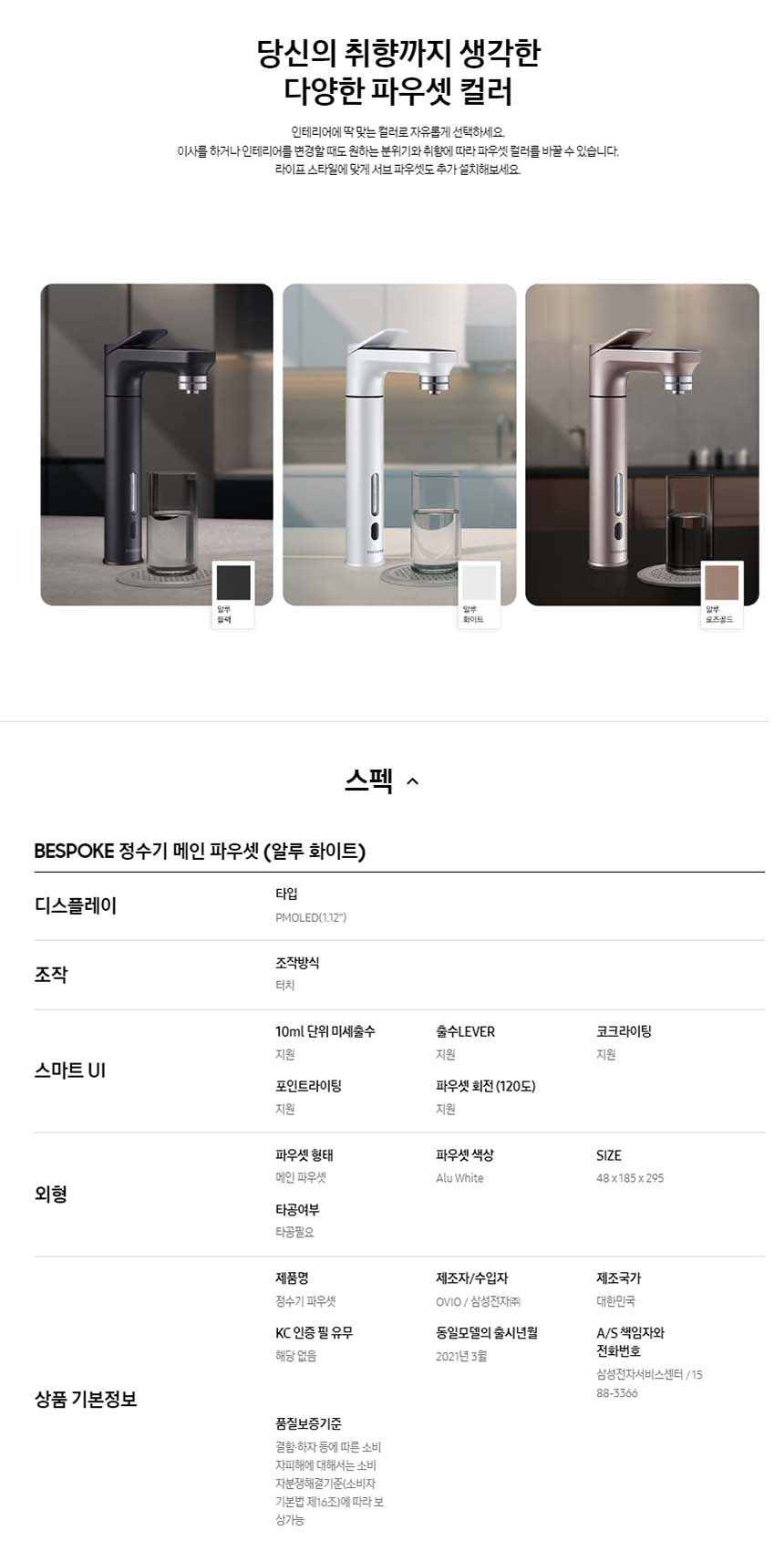 [렌탈] 삼성 비스포크 빌트인 정수기 메인파우셋 화이트 RA-F00MAAA6