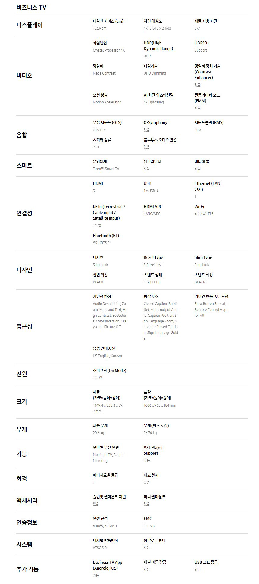 [렌탈] 삼성 LCD 사이니지 65인치 LH65BEDHLBFXKR