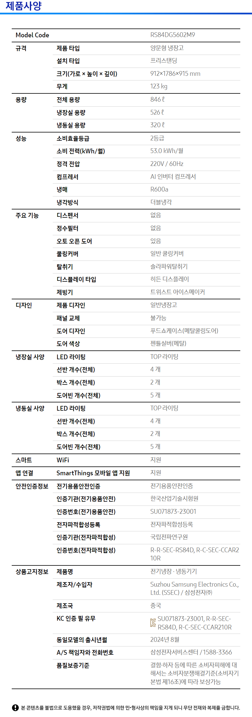[렌탈] 삼성 비스포크 양문형 냉장고 846L RS84DG5602M9