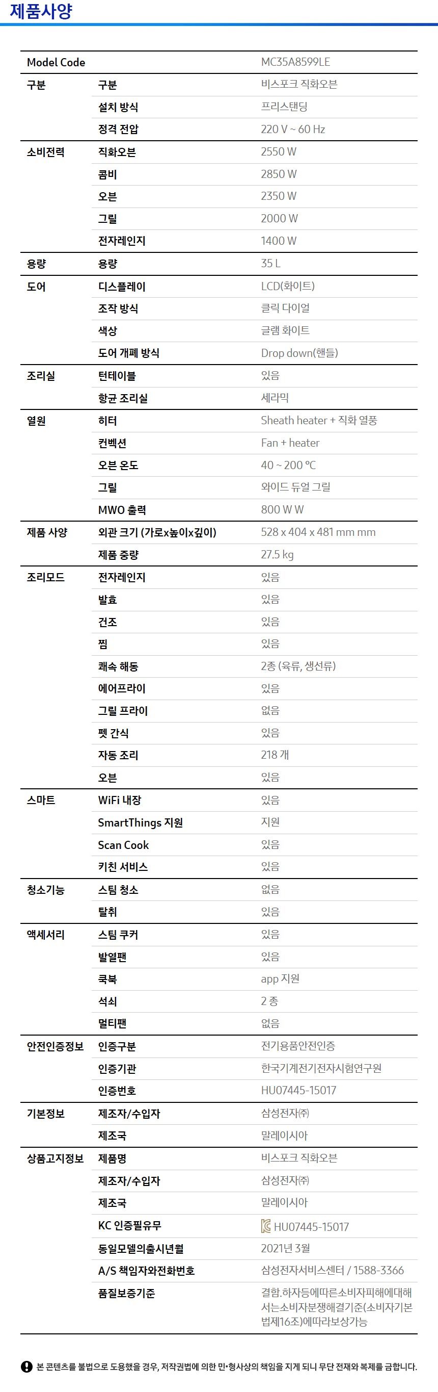 [렌탈] 삼성 비스포크 큐커 오븐 35L (직화오븐) MC35A8599LE