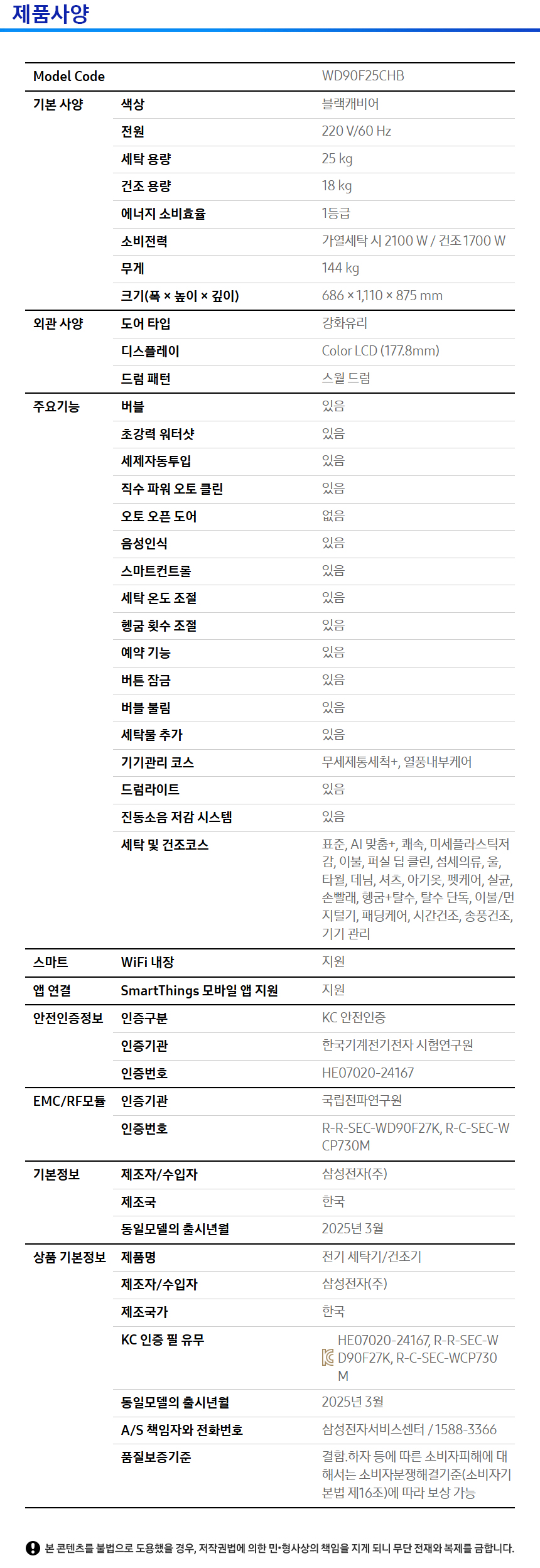 [렌탈] 삼성 비스포크 AI 콤보 25+18kg WD90F25CHB